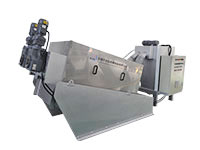 污泥在濃縮部經過重力濃縮后,被運輸到脫水部,在前進的過程中隨著濾縫及螺距的逐漸變小,以及背壓板的阻擋作用下,產生內壓,容積不斷縮小,達到充分脫水的目的。